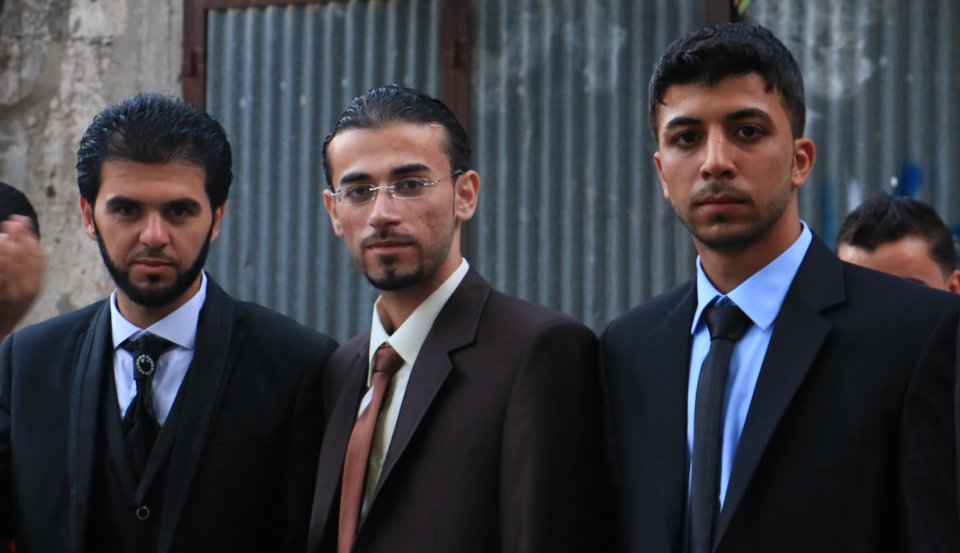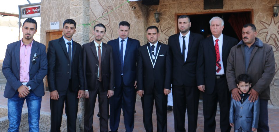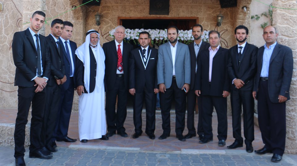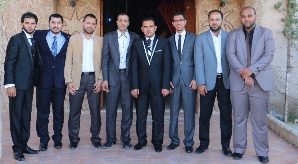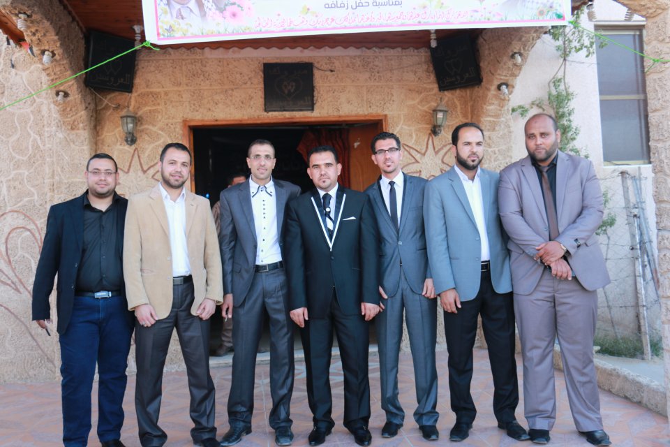 ،، محمد الأسطل(عديل العريس)، نزيه جميل(عم العروس)، محمد سمير(شقيق العروس)، العريس، والد العريس،