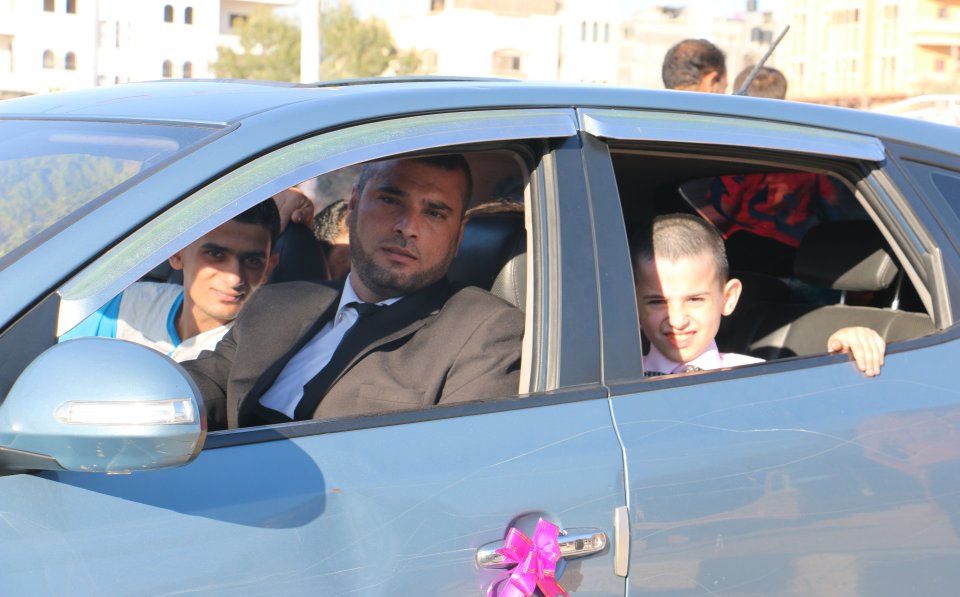 حمد الأسطل(عديل العريس)وولده يوسف ، نزيه جميل(عم العروس)، محمد سمير(شقيق العروس)،
