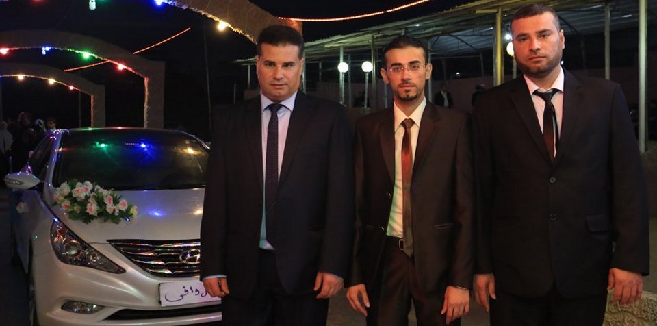 أسامة نظام، وشقيقه السيد اياد، صلاح عبدالله، عم العروس، العريس