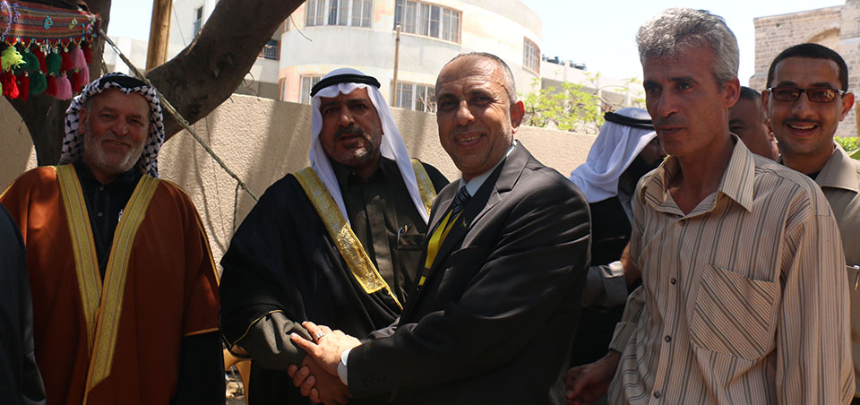 المقدم أحمد اللي (مكتب رئيس الوزراء) د. يوسف أبو دية (مكتب الرئيس ورئيس جامعة غزة السابق)، د.م. فريج مهنا، المختار عوض قنديل
