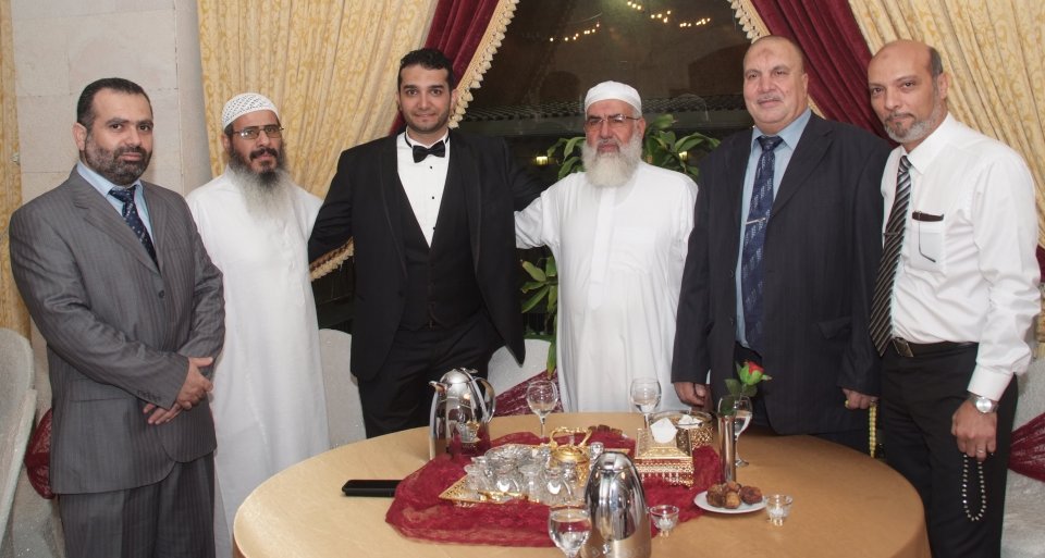 الدكتور أبو عبيدة خيري الآغا، المهندس بلال الأغا(شقيق العريس)، محمد بركات(خال العريس)، العريس، الدكتور أسامة خيري الآغا