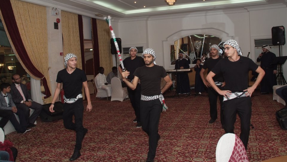 أقارب العريس مع عم العريس محمد الأغا(على يمين العريس)
