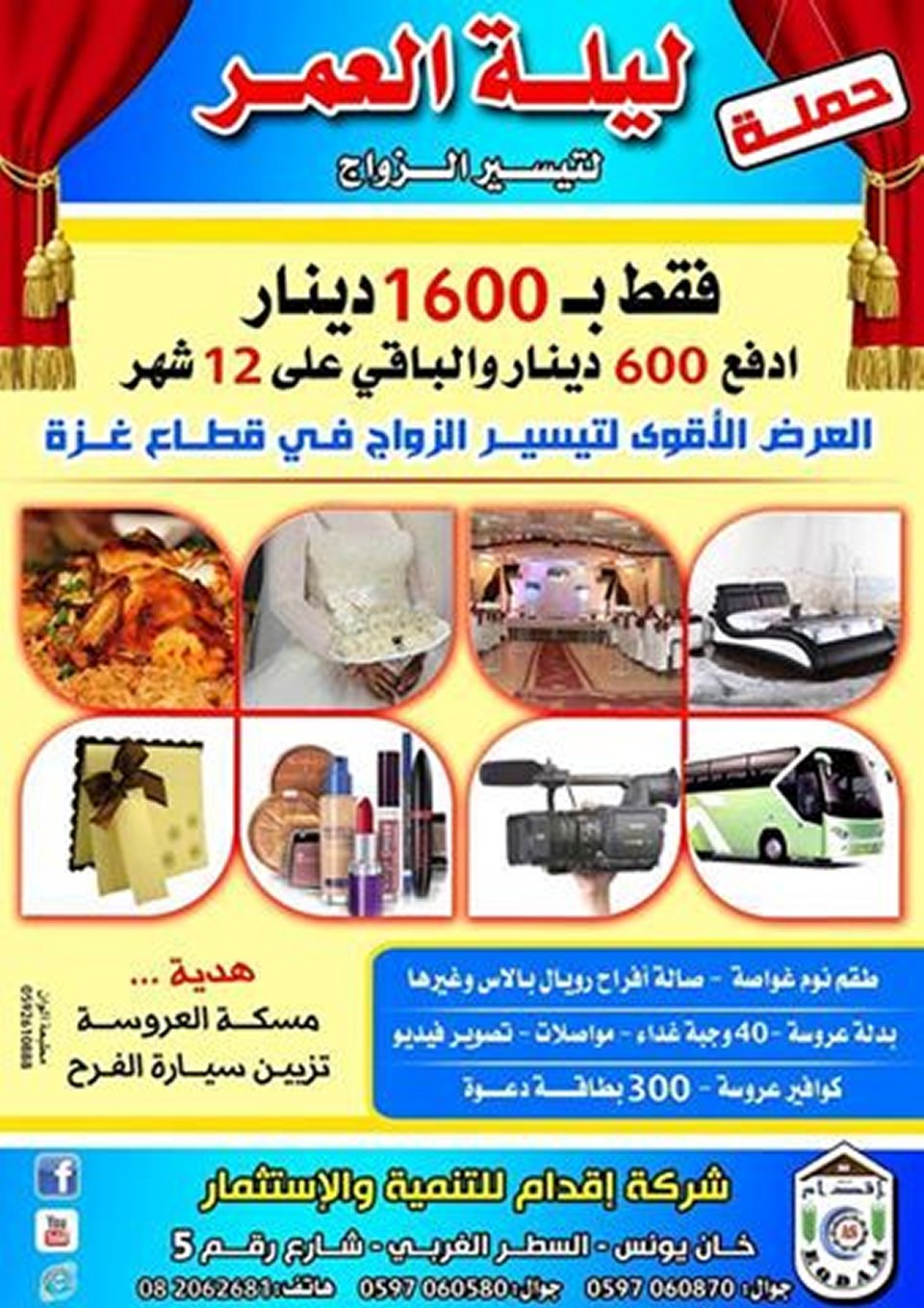 بدوره أكد رئيس مجلس إدارة الشركة أ.رياض الأسطل أن الحملة تعتبر أقوى حملة بقطاع غزة في مجال تيسير الزواج للشباب الفلسطيني وتهدف للوقوف بجانبهم ودعمهم وتسهيل الزواج لهم كبادرة طيبة تقدمها الشركة دعما للشباب الفلسطيني لمواجهة تداعيات الحصار المفروض على قطاع غزة منذ أكثر من 8 سنوات .