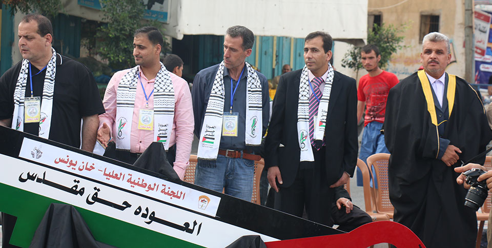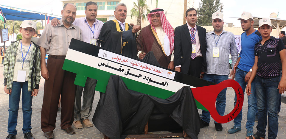 نظم عصر اليوم الخميس ملتقي أبناء عائلات محافظة خانيونس فعالية إحياء الذكري السابعه والستون لنكبة عام 48 بعنوان (العودة الي الجذور) وذلك أمام ساحة بلدية خانيونس بتجسيدها خيمة تراثية وبيت من الشعر ووضع أمامها عددا من الجمال تعبر عن واقع التراث الشعبي الأصيل والدبكة الشعبية والشعر والقهوة العربية التي تمثل العادات التراثية القديمة التي احتفظ بها أجدادنا علي مر التاريخ ، ونماذج تعبر عن أنماط الحياة المختلفة في المجتمع الفلسطيني .