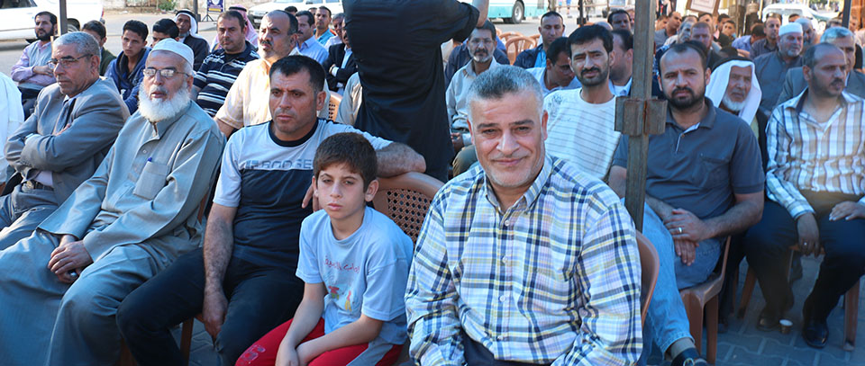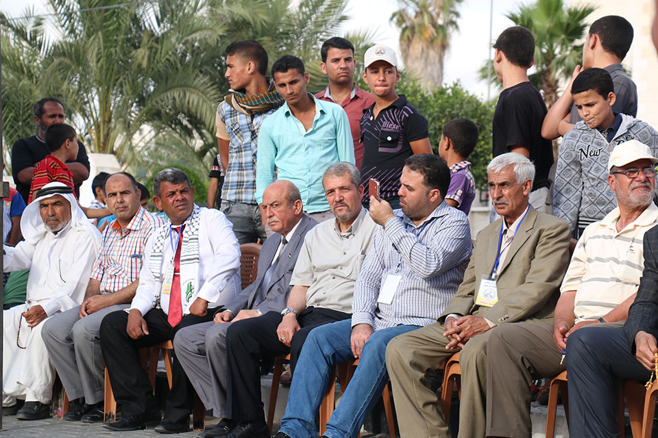 وافتتح الخيمة التراثية عدد من الوجهاء والمخاتير والمثقفين ومدراء مؤسسات وأبناء العائلات في محافظة خانيونس، معبرين عن اعتزازهم بتراثهم وتمسكهم وبعاداتهم وبحقوقهم حق العودة . حيث أفتتحت الفعالية بكلمة عريف الحفل الأستاذ/ محمد الباز (أبوشادي) الترحيب بالحضور الكريم الجمع الغفير وتطرق خلال كلمته عن تاريخ خانيونس العريق وما قدمته من شهداء وصمود شعبها أمام غطرسة الإحتلال خانيونس صانعة القادة والرجال علي مر السنين وشهد لها العدو قبل الصديق وبعد ذلك وقف الحضور الكريم لقراءة الفاتحة علي أرواح الشهداء الأبرار ثم تلا الشيخ حسن أبوشقرة أيات من الذكر الحكيم ثم كانت كلمة ملتقي أبناء عائلات محافظة خانيونس ألقاها الأستاذ/ عودة العمور موضحاً للجميع رسالة ورؤية وأهداف الملتقي التي بني وأسس وانطلق من أجلها وهي تعزيز أواصر الترابط الإجتماعي بين عائلات خانيونس بما يهدف للمصلحة العامة وحماية الجبهة الداخلية من التمزق والفتن في ظل الحصار والمعاناة التي يعانيها المجتمع الفلسطيني عامة واستشهد خلال كلمته بوقفة ووحدة أبناء عائلات خانيونس خلال الحرب الأخيرة علي قطاع غزة بإحتضان الجميع لسكان المناطق الحدودية الذين تركوا بيوتهم.