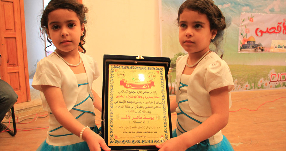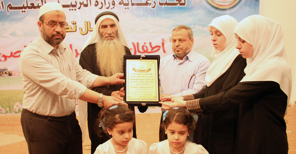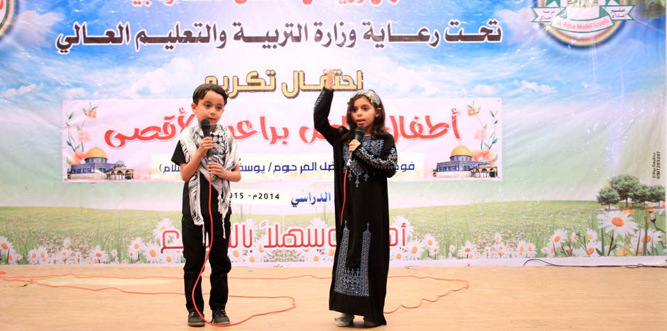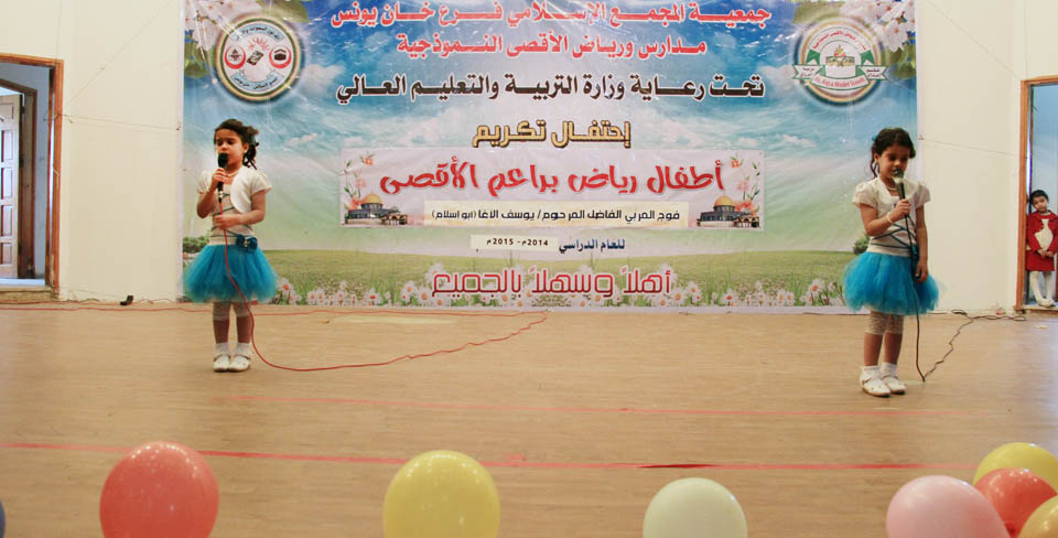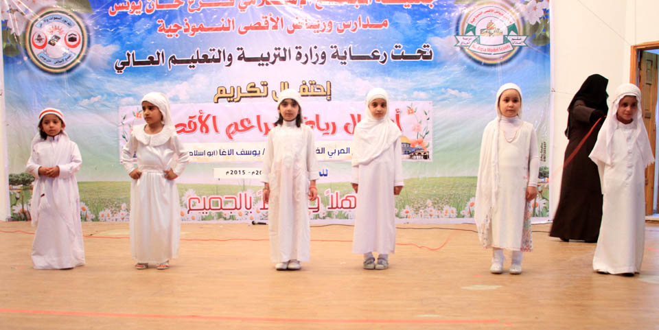 قاعة المركز الثقافي- خان يونس- بجوار كلية العلوم والتكنولوجيا- السبت الموافق 23-05-2015، أقامت مدراس ورياض الأقصى النموذجية بخان يونس، أحتفالاً لتكريم الطلبة المتفوقين في مدارسها، وحضر هذا الإحتفال لفيف من الشخصيات الإعتبارية والمجتمعية وأهالي الطلبة المتفوقين.