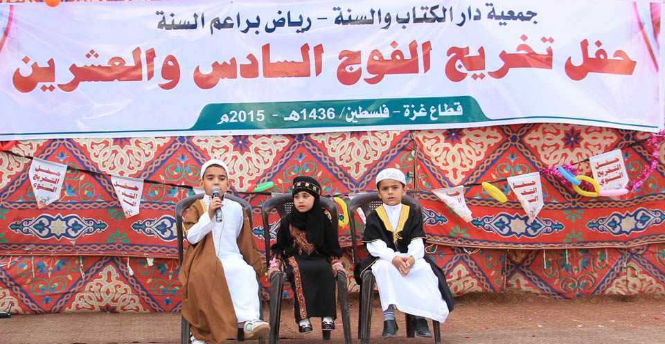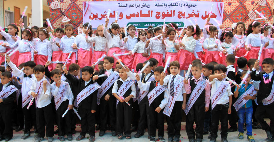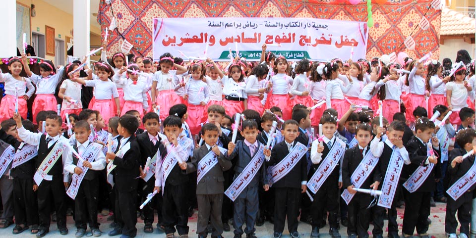 خان يونس- احتفلت رياض براعم السنة، التابعة لجمعية دار الكتاب والسنة، بتخريج 1800 طالب وطالبة ضمن الفوج السادس والعشرين من طلبة الرياض بفروعها الخمس بقطاع غزة، وذلك على مدار ثلاثة أيام متتالية، بحضور الخريجين وذويهم، ولفيف من الداعيات وممثلات عن مديرية التربية والتعليم.