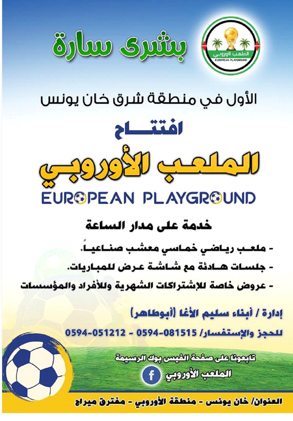 تستعد إدارة الملعب الأوروبي اليوم السبت 6-6-2015 م لافتتاحه أمام جمهوره الكريم لخدمتهم طوال أيام الإسبوع وعلى مدار الساعة.