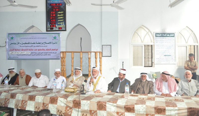 تم توقيع صلح عشائري بين عائلة الأسطل وعائلة النجار بخان يونس علي أثر حادث السير المؤسف الذي أودي بحياة الطفل مروان الأسطل قبل عدة أيام .. وذلك برعاية وحضور دائرة الإصلاح في رابطة علماء فلسطين – وبحضور وجهاء ومخاتير العائلتين والعديد من وجهاء ومخاتير ورجال الإصلاح في محافظة خانيونس.
