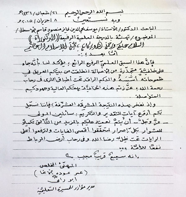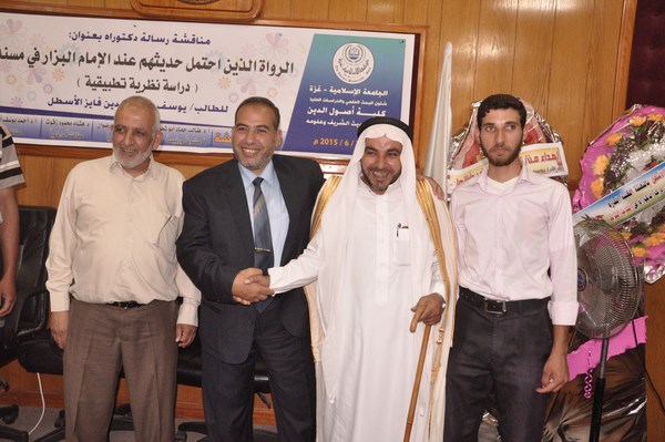 غزة- منح بفضل الله وكرمه الباحث يوسف محيي الدين الأسطل درجة الدكتوراه في الحديث الشريف وعلومه من الجامعة الاسلامية وذلك ظهر اليوم الاحد 7-6-2015م والتي كانت بعنوان