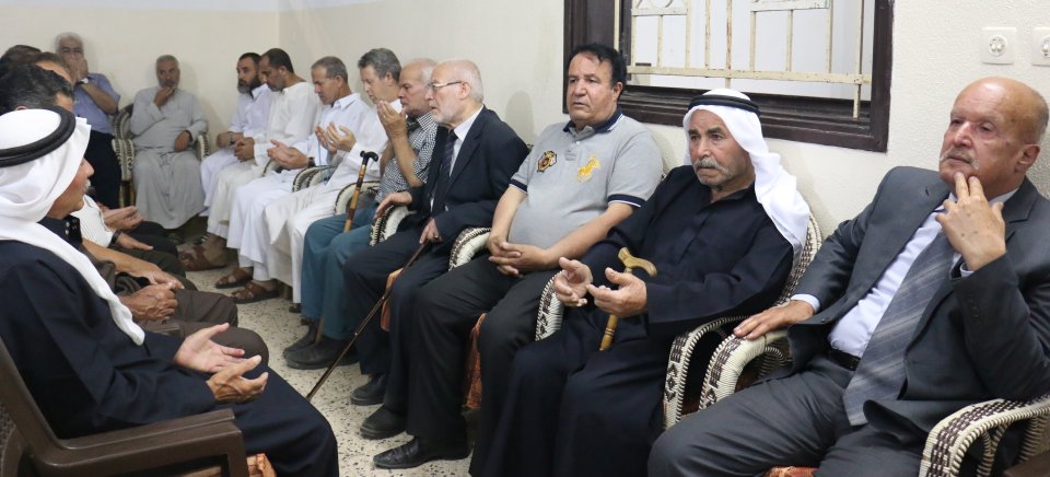 م. معيد(نجل الفقيد)، سليم(ابن شقيق الفقيد)، الحاج مدحت(شقيق الفقيد)، محامي جهاد(ابن شقيق الفقيد)، أ. عمر عودة(ابن شقيقة زوجة الفقيد)