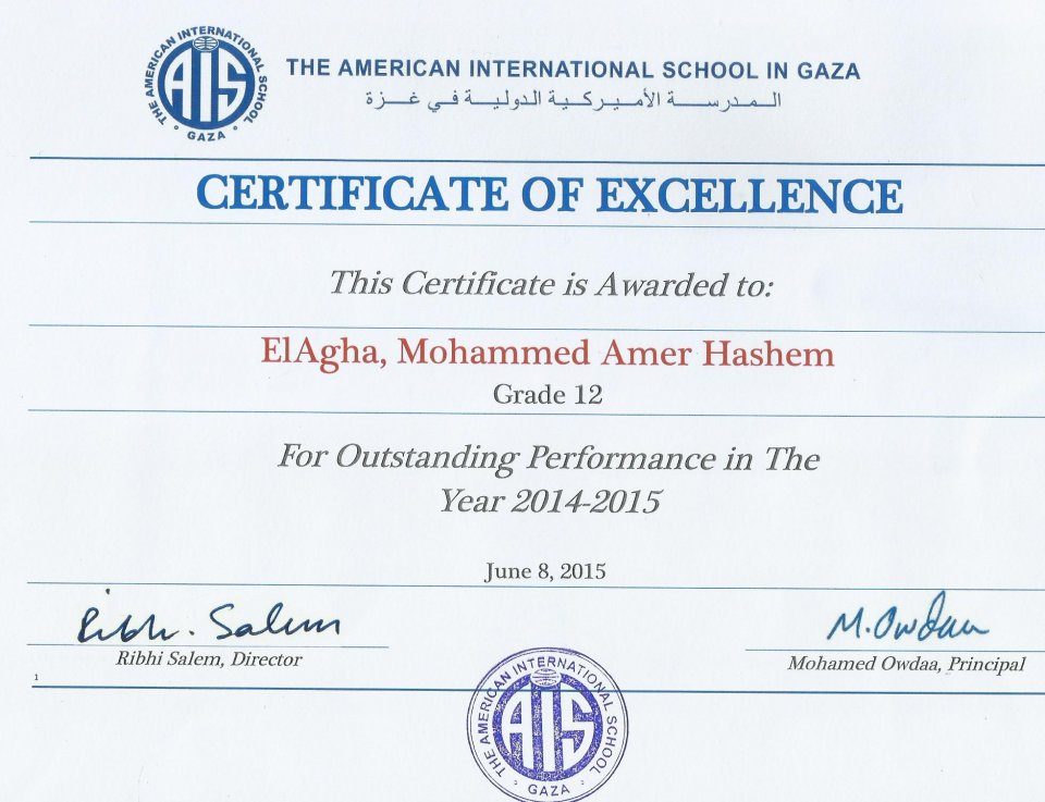 حيث حصل الطالب محمد عامر هاشم الاغا عل معدل 97.9% بالفرع العلمي