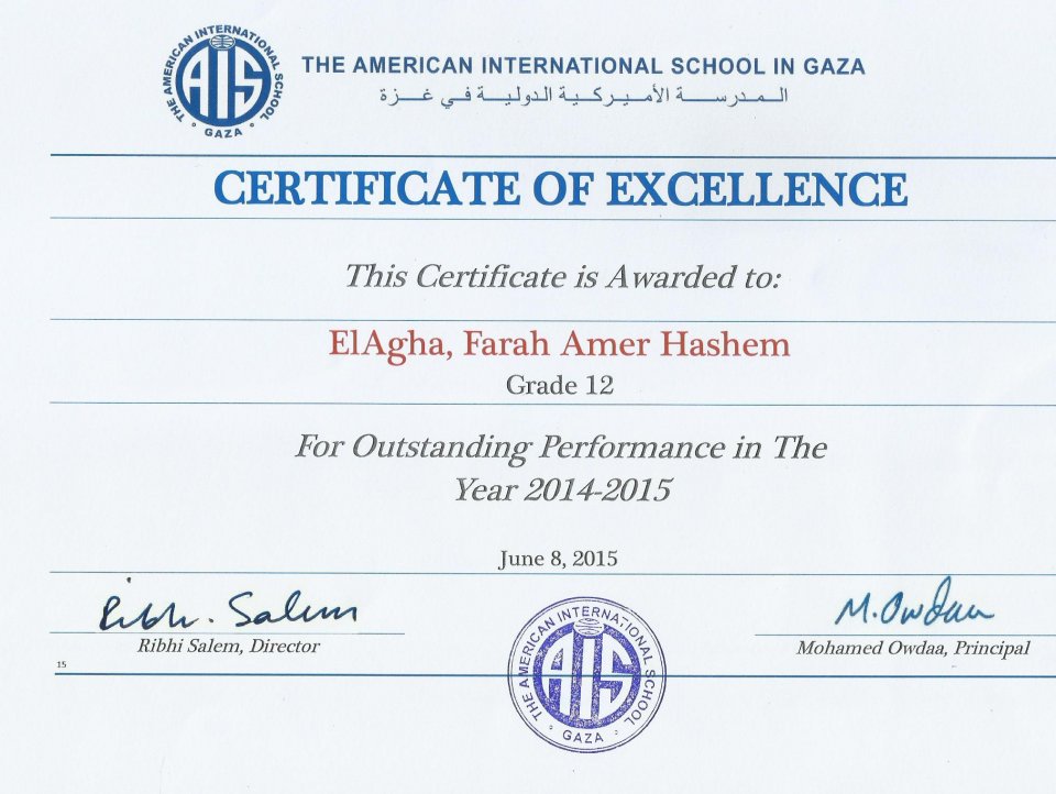 وحصلت شقيقته فرح عامر هاشم الأغا على معدل 96.5% بالفرع العلمي