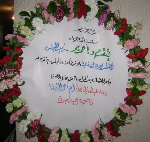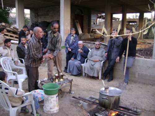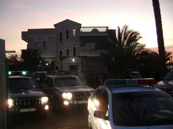 داخل بيت العزاء ويبدو فى الخلف منزل المهندس سفيان الأغا