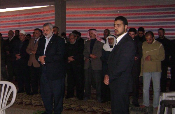 أ. اسماعيل هنية اماما في صلاة المغرب داخل بيت العزاء