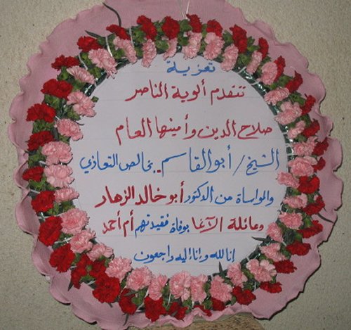 ملاحظة: بيت العزاء في خان يونس بالسطر الغربي في منزل السيد محمد نايف الاغا