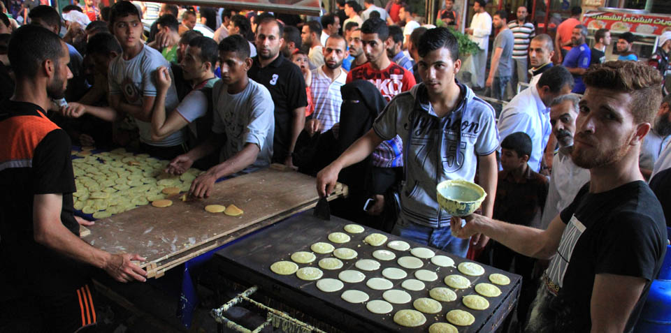 خان يونس- اليوم الأول من رمضان لعام 1436هجرية، يقبل المواطنون في هذا الشهر الفضيل على التزود بالمواد الغذائية بانواعها وشراء الحاجيات الضرورية ، ويكثر الإقبال على الحلويات بأنواعها كالقطايف، ولشهر رمضان طقوسه الخاصة ، فهو شهر للعبادة أيضاً، وكان لعدستنا بعض اللقطات قبيل أذان المغرب، وكل عام وأنتم بخير.