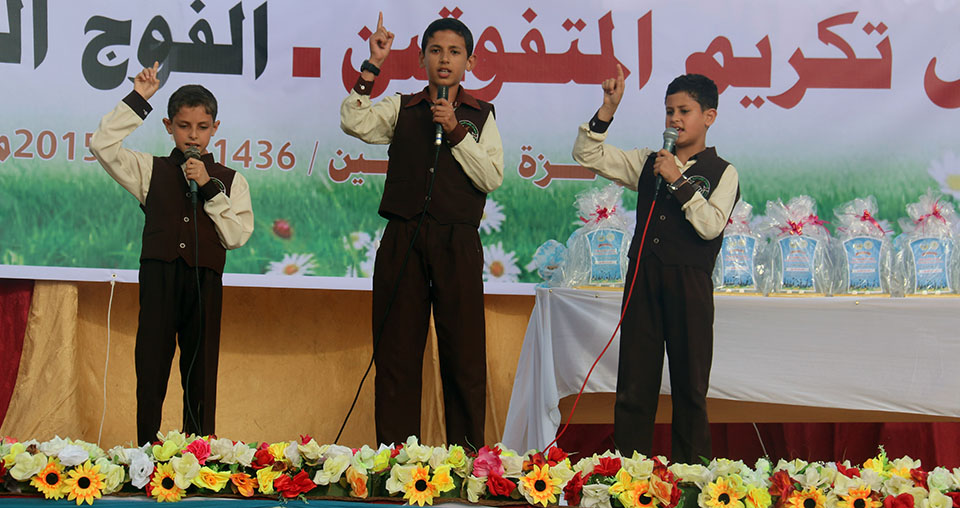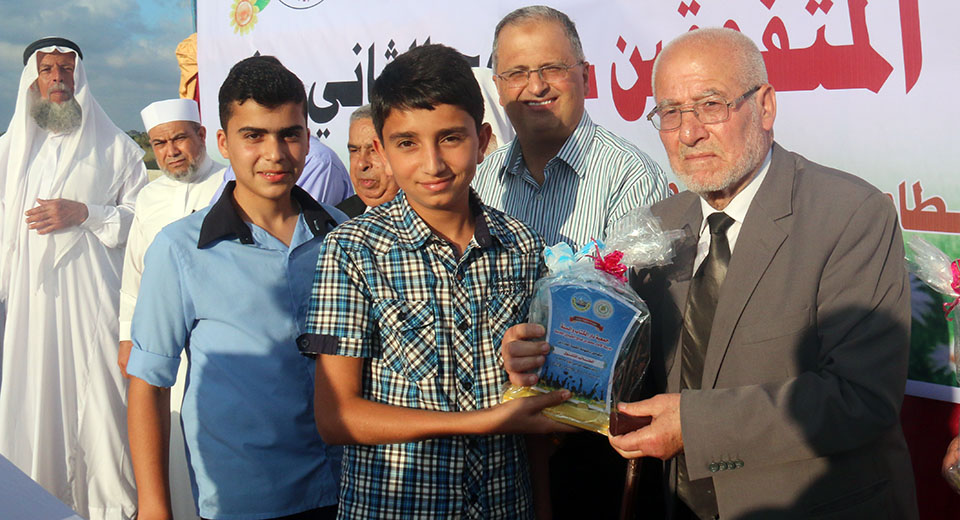 وفي كلمة الطلبة المتوفين، أهدى الطالب المتفوق أحمد جهاد المصري، نجاحه وتفوقه وزملائه الطلبة إلى مدير مدرستهم الأستاذ يحيى الفرا، وإلى معلمي ومعلمات المدرسة، وإلى أولياء أمورهم، الذين ينتظرون تلك اللحظات التي نحصل فيها على المراتب المتقدمة بفراغ الصبر، والذين يسخرون كل طاقاتهم وامكانياتهم وجُل أوقاتهم من أجل أبنائهم الطلبة.