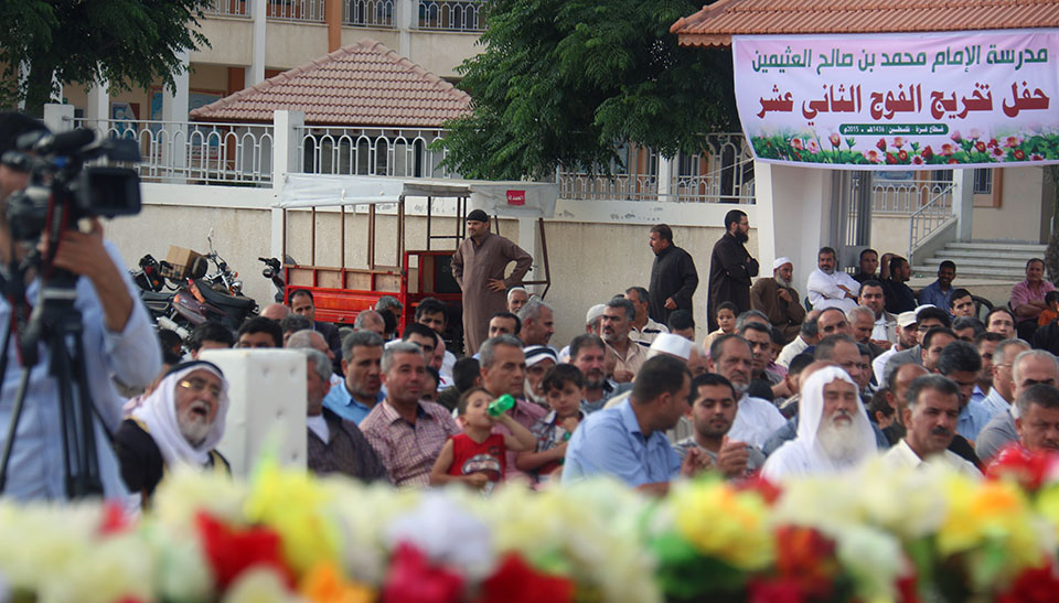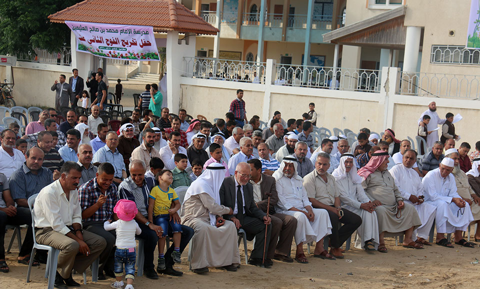 خان يونس- حاتم علي العسولي- احتفلت مدرسة الإمام محمد بن صالح العثيمين، التابعة لجمعية دار الكتاب والسنة، بتخريج الفوج الثاني عشر من طلبتها، وذلك خلال حفل بهيج حضره لفيف من الوجهاء والمخاتير والمشايخ والدعاة والمسؤولين، وممثلين عن المؤسسات الرسمية والأهلية، وأولياء أمور الطلبة المحتفى بهم.