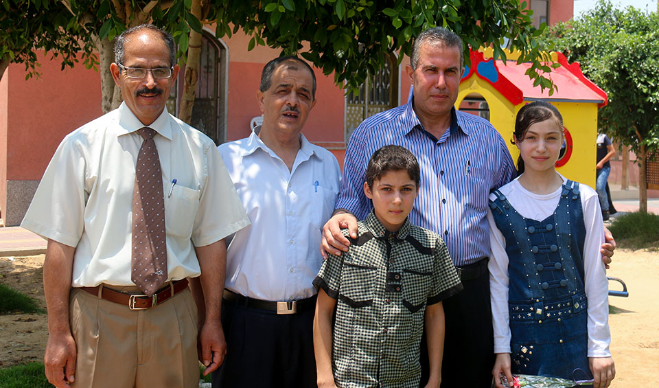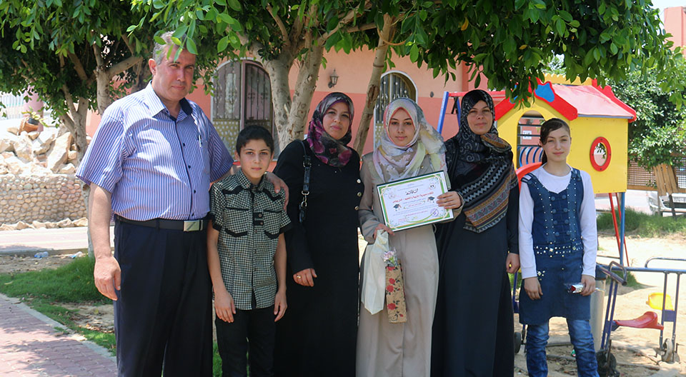 المتفوقة شيماء ووالدتها، أ. منار طياب الأغا وزوجته وكريمته ولاء ونجله بهاء