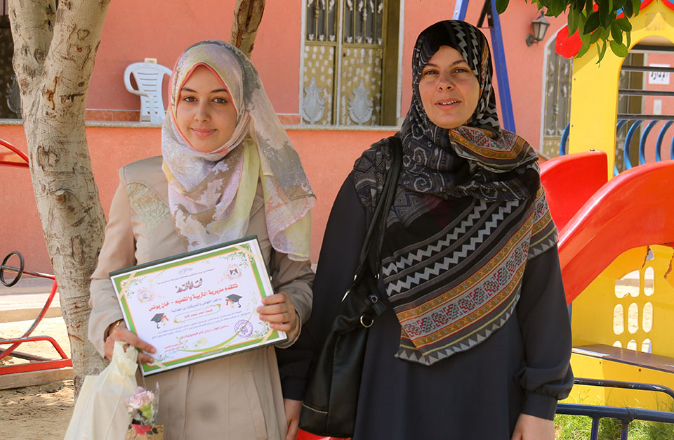 المتفوقة شيماء ووالدتها أ. سها إحسان الأغا