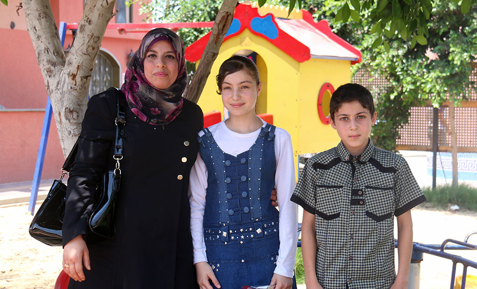 بهاء منار الأغا وشقيقته ولاء وزوجة والدهم أ. يسرى رسمي بدر