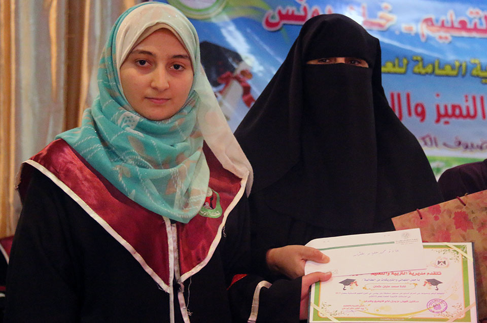 تكريم ياسمين طلعت سلامة النجار، 99.4 % الحاصلة على المرتبة الاولى على محافظة خان يونس والاولى على القسم الشرعي
