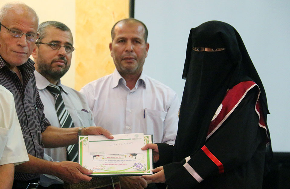 تكريم المتفوقة شيماء أحمد الاغا الحاصلة على معدل 99.3% والحاصلة على الترتيب الخامس على فلسطين