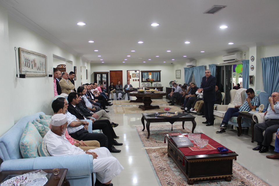 استقبل سفير فلسطين لدى ماليزيا د أنور الأغا و حرمه و طاقم السفارة أبناء الجالية الفلسطينية في ماليزيا، و ذلك في البيت الفلسطيني في كوالالمبور، مقر إقامة السفير الفلسطيني، في جلسة عيد الفطر السعيد، التي تواجد خلالها أبناء الجالية الفلسطينية من الرجال و السيدات و الشباب و الشابات و الأطفال القادمين من مخيم اليرموك و مناطق مختلفة في سوريا و من العراق و اليمن و الاْردن و داخل الوطن الفلسطيني و من مناطق اخرى خارج الوطن.