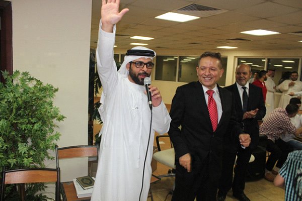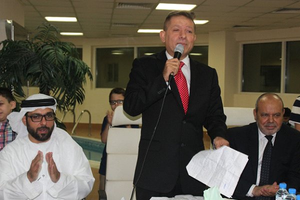 - ثم كانت كلمة العيد من أ. ماجد عصام رحب فيها بالجميع و قدم التهنئة بالعيد السعيد،و كان للضيوف الكرام القادمين من خارج الامارات الحظ الأوفر من هذا الترحيب وهم:
