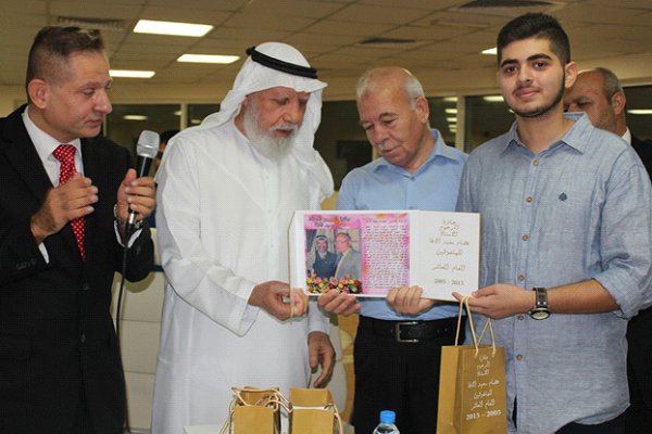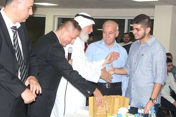النظام الوزاري في الثانوية العامة متسلما جائزته من الحاج ابو بلال و ابو غانم و في حضور والده