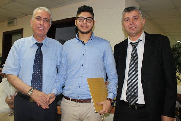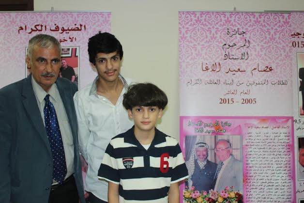 المتفوق خالد بسام بين عمه أ. حسام ووالده أ. بسام عثمان و جائزة المرحوم أ. عصام الأغا