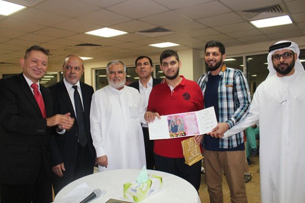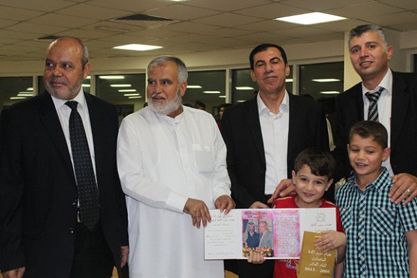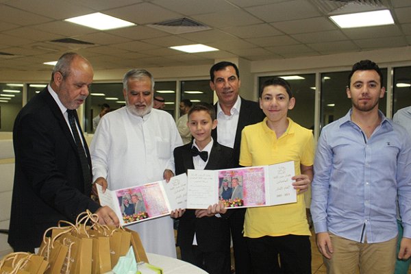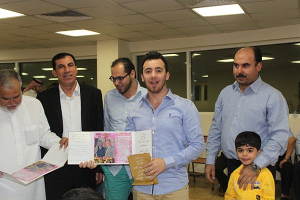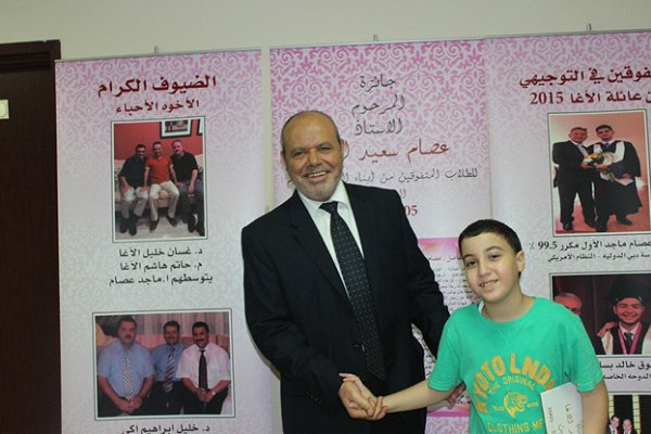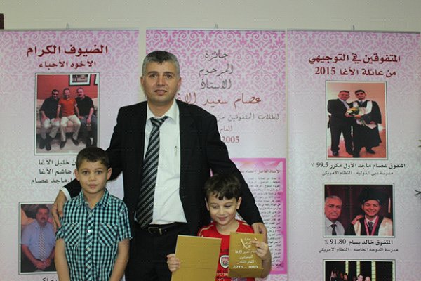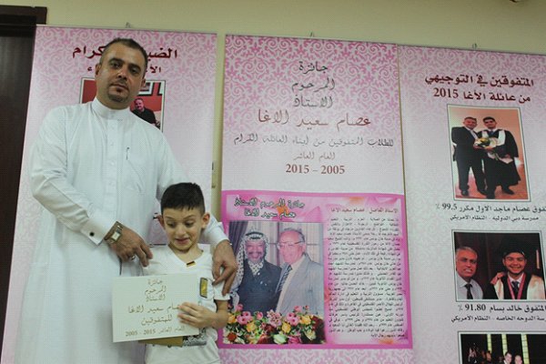 أ. حاتم هاشم الاغا القادم من شيكاغو مع أسرته و حصوله على جائزة المرحوم عصام الاغا للمتميزين