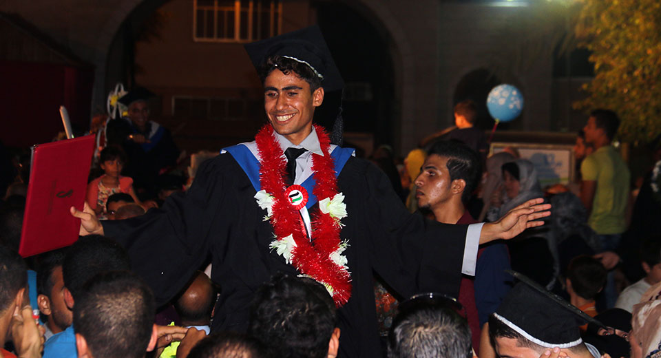 الكلية الجامعية للعلوم التطبيقية- غزة- تل الهوى- إحتفالات تخريج الفوج السادس عشر فوج الريادة- تخرج الطالب عبدالمعطي محمد الأغا، وألف مبارك