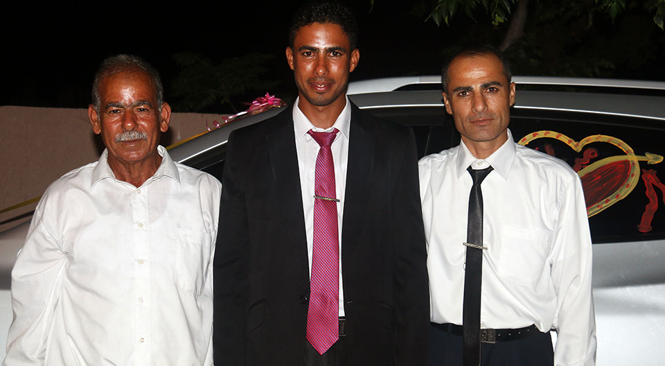 السيد تيسير(والد العروس)، العريس، الحاج عيد(والد العريس)