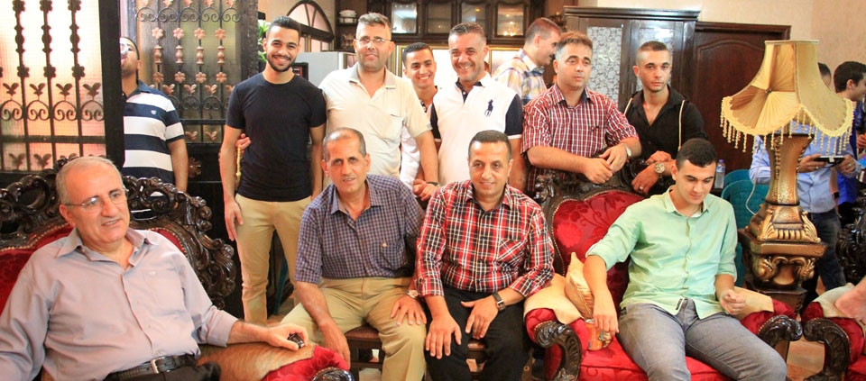 أ. أمجد أحمد الأغا(زوج شقيقة العريس)، عم العروس، أ. هاني شعت، أ. حازم شحادة(زوج شقيقة العريس)، أحمد أمجد الأغا،