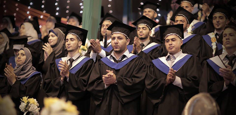 الكلية الجامعية للعلوم التطبيقية- غزة- تل الهوى- إحتفالات تخريج الفوج السادس عشر فوج الريادة، تخرج الطالب محمد عبدالفتاح رواي الأغا تخصص سكرتارية وعلوم قانونية، وألف مبارك
