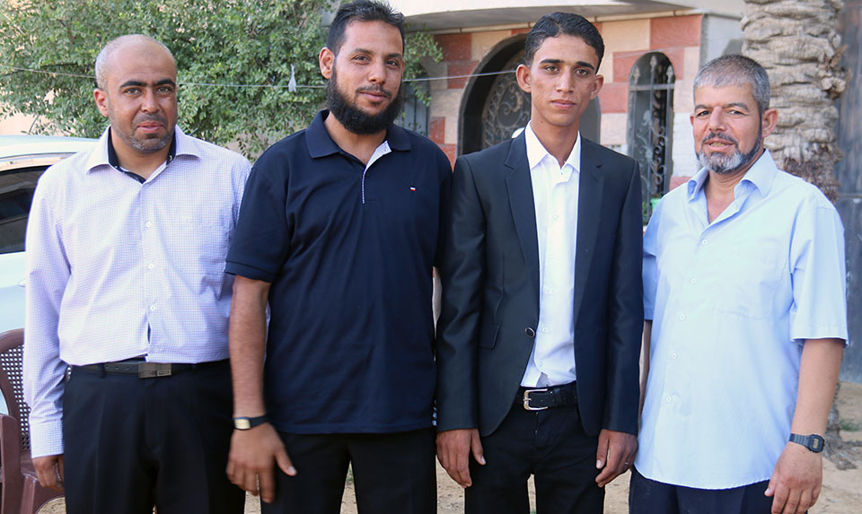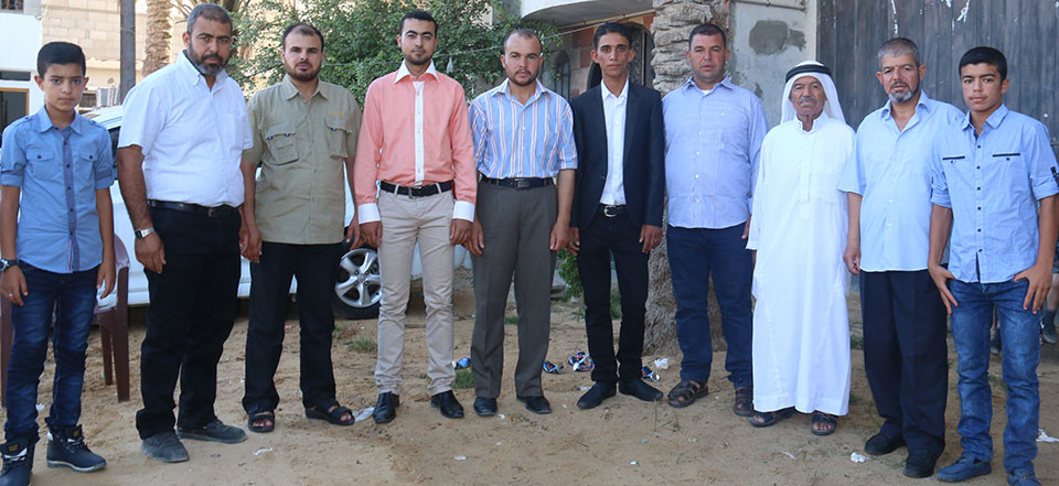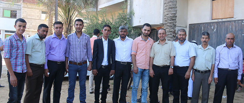 أ. تميم فالوجي الأغا، العريس، أ. نضال محمد خلف الله (زوج شقيقة العريس)، أ. محمد (شقيق العريس)