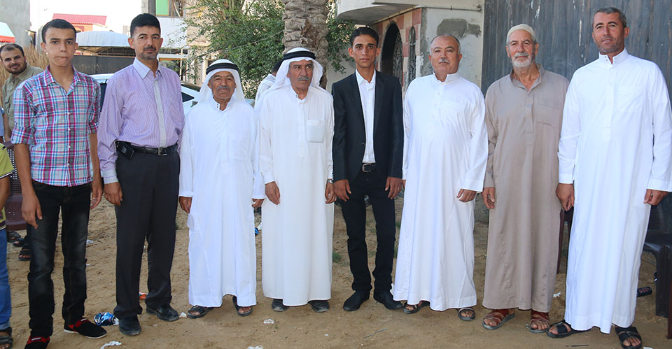 رائد جبارة الأغا، أ. جمال نايف الأغا، أ. نبيل فالوجي الأغا( إبن عم العريس وعم العروس)، الحاج عبدالرحيم عودة الأغا وشقيقه أ. محمد عودة