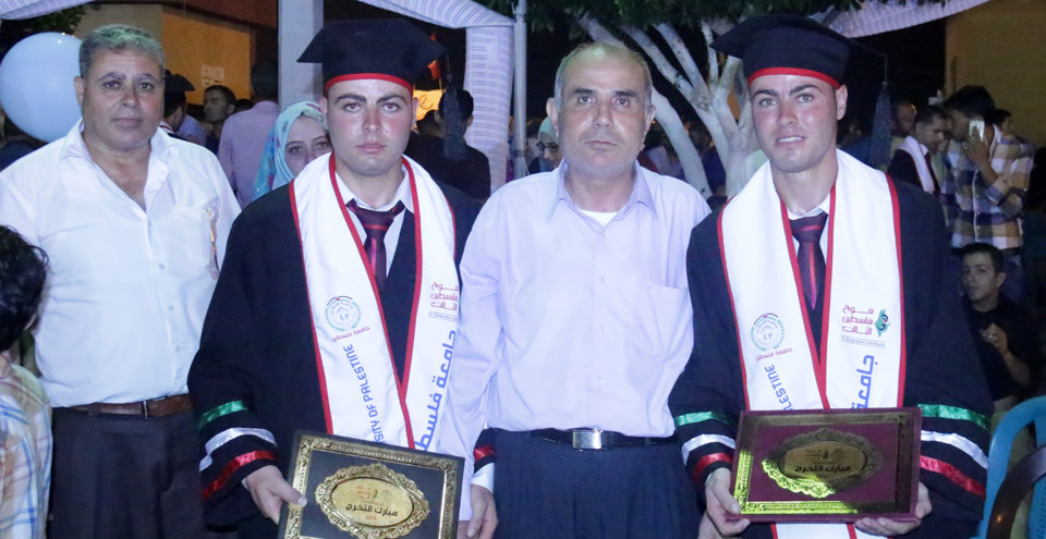 م. جعفر محمد الأغا، م. سليم بيان الأغا، الخريج سلام بيان الاغا ووالده، سعيد محمد الأغا