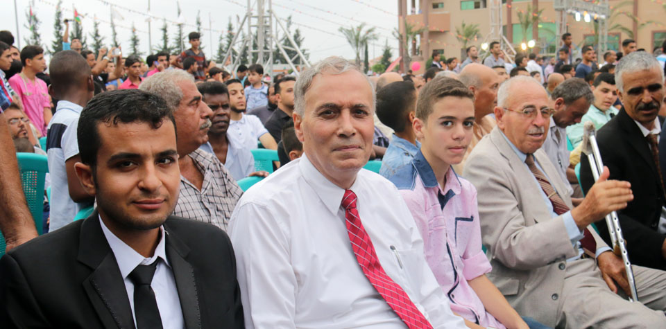 حيث افتتح "الأغا" الحفل بكلمة ترحيبية أثنى فيها على كافة الحضور والوفود الزائرة، ومؤكداً أن جامعة فلسطين ستبقى وفية لكل من وقف من أجل شموخها ووجودها، مبرقاً بالتحية لروح الشهيد القائد الرمز ياسر عرفات صاحب القرار الأول لتأسيس الجامعة، ولفخامة الرئيس محمود عباس الذي منح الجامعة دعمه ورافق مسيرتها وكان له الفضل في منح الجامعة الأرض التي هي عليها.