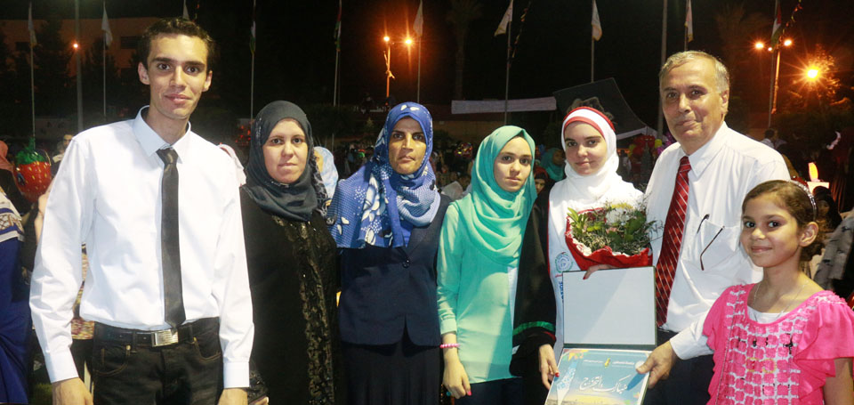 الخريجة لينا خالد الاغا وشقيقه أحمدأ. الأمير خالد الأغا، أ. عمر عودة الأغا(عم الخريجة)، الخريجة لينا خالد