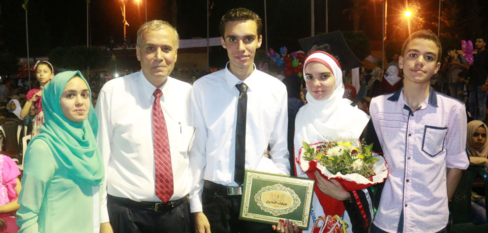 أ. دعاء شراب ووالديها وشقيقها المهندس الخريج حسن