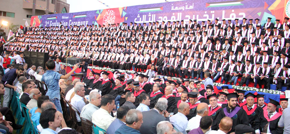 احتفلت جامعة فلسطين بتخريج الفوج الثالث من طلبتها تحت عنوان "فوج فلسطين الثالث" ضمن احتفالية مركزية تحت رعاية فخامة الرئيس محمود عباس "أبو مازن"، بحضور معالي الوزير الدكتور كمال الشرافي ممثلاً عن السيد الرئيس، والمهندس عماد الأغا رئيس مجلس إدارة الجامعة، والأستاذ فاروق الافرنجي رئيس مجلس الأمناء، والدكتور سالم صبّاح رئيس الجامعة، ولفيف من نواب المجلس التشريعي والوزراء ورؤساء الجامعات والمؤسسات التعليمية، والوجهاء والشخصيات الاعتبارية والمؤسسات الوطنية والدولية وأهالي الخريجيين وذويهم وآلاف الحضور من مختلف فئات المجتمع الفلسطيني.