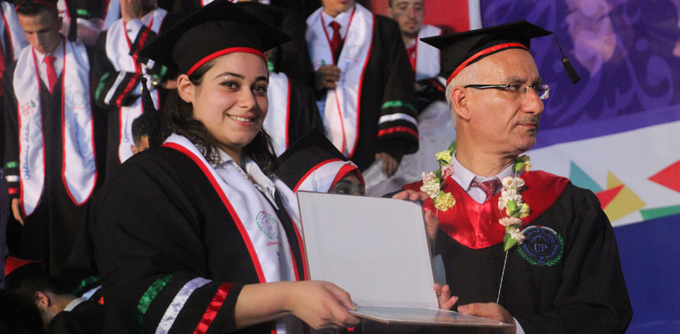 وهنأ "الافرنجي" الطلبة الخريجين وذويهم متمنياً لهم مستقبلاً واعداً، ومؤكداً أن الجامعة ماضية حتى تحقيق أهدافها في دعم التعليم وتطويره بما يحاكي المستويات العالمية من أجل فلسطين وأبناء فلسطين، ومفتخراً بافتتاح الجامعة لتخصصات جديدة هذا العام تحتاجها مؤسساتنا وسوق العمل وهي تخصص هندسة المعدات الطبية، والصحة والتغذية، والإدارة الصحية.