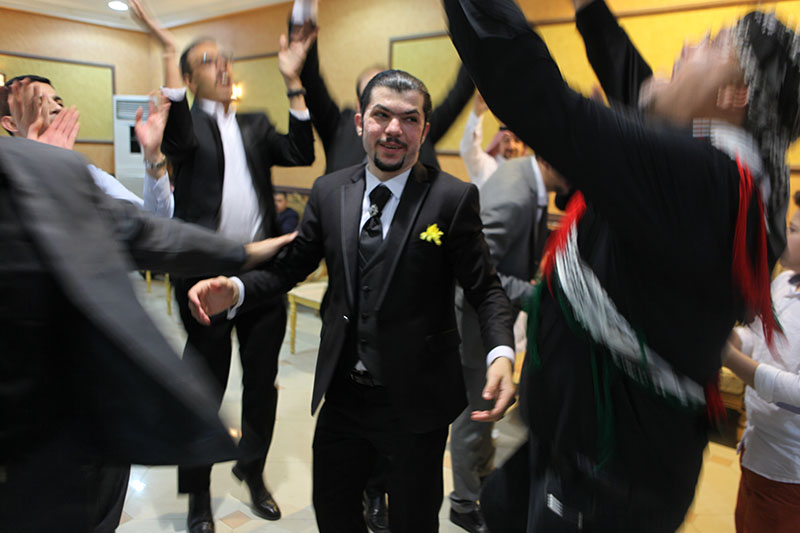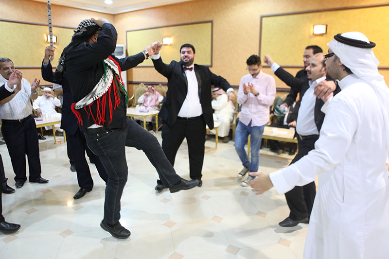 فرقة الدبكة الفلسطينية تشارك العريسان فرحتهم
