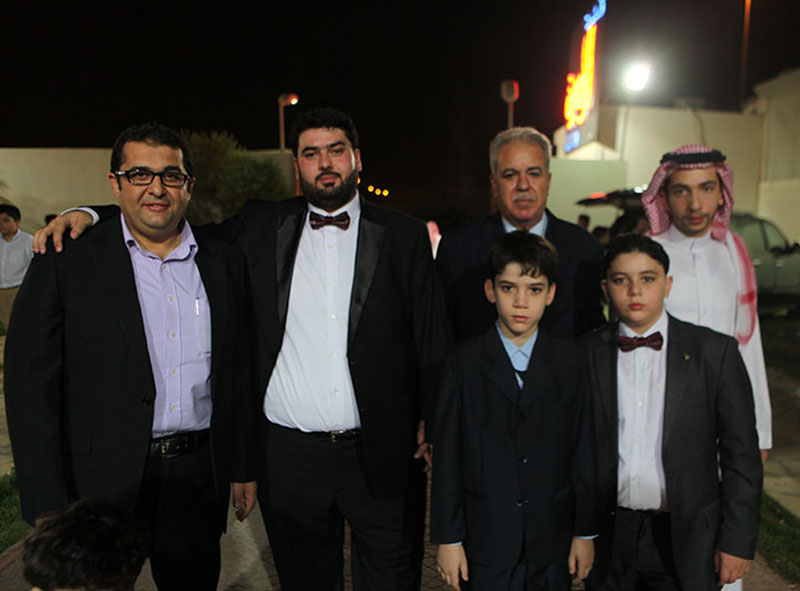 -د/باسم الاغا (عم العريسان)، د/ماجد اسحاق الحايك ، أ/طاهر يونس الاغا ، جهاد (والد العريسان ) ، فادي باسم الاغا