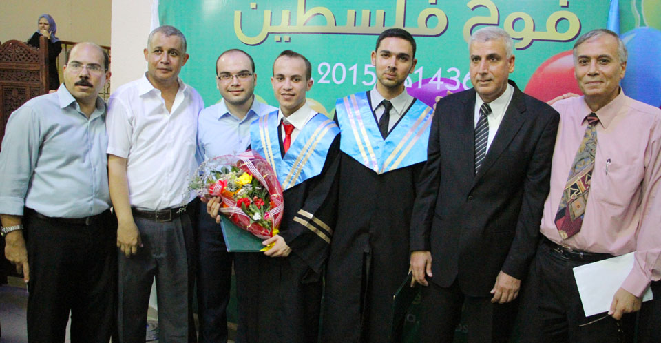 أ. حاسي أحمد، أ. بيان سليم، الخريجان سليم بيان وجعفر محمد، د. إبراهيم ماجد، أ. سعيد عبدالمعطي الأغا، أ. وضاح أحمد