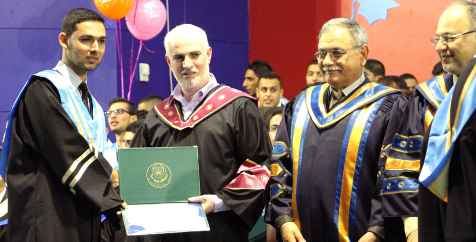 اختتمت الجامعة الإسلامية بغزة احتفالات تخريج الفوج الرابع والثلاثين "فوج فلسطين" بتخريج دفعة جديدة من طلبة كليتي الهندسة وتكنولوجيا المعلومات، وأقيم حفل التخريج في قاعة المؤتمرات الكبرى بمركز المؤتمرات بالجامعة بحضور الدكتور نصر الدين المزيني –رئيس مجلس الأمناء، والدكتور كمالين كامل شعث –رئيس الجامعة، وأعضاء مجلسي الأمناء والجامعة، والدكتور فهد رباح –عميد كلية الهندسة، والدكتور توفيق برهوم –عميد كلية تكنولوجيا المعلومات، ولفيف من الشخصيات الاعتبارية، وجمع كبير من العاملين في القطاعين الهندسي وتكنولوجيا المعلومات، وأعضاء هيئة التدريس في كليتي الهندسة وتكنولوجيا المعلومات، والخريجون والخريجات، وذووهم، وتخرج الطالب سليم بيان سليم الأغا في كلية تكنولوجيا المعلومات بتقدير عام جيد جداً، وألف مبارك .