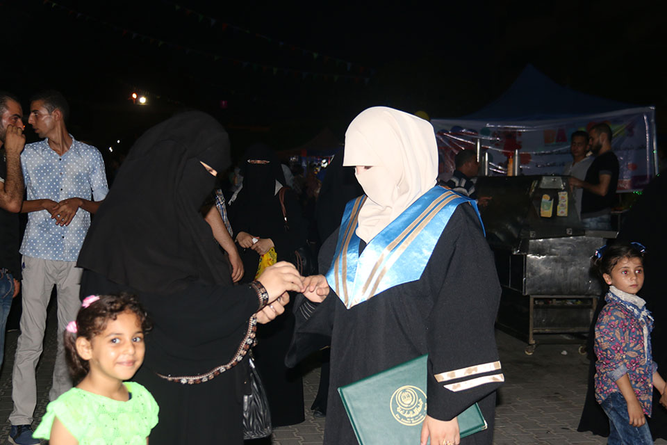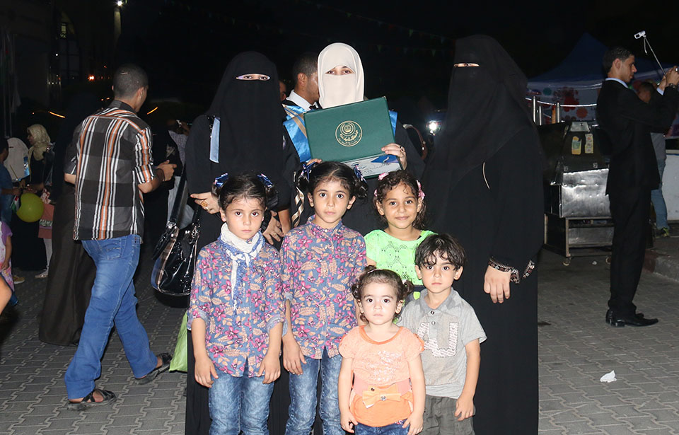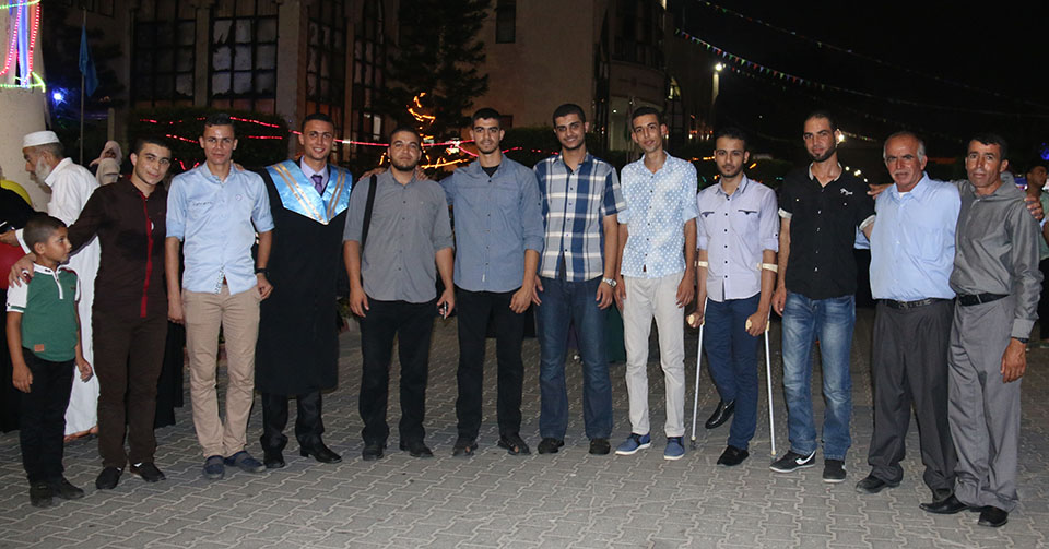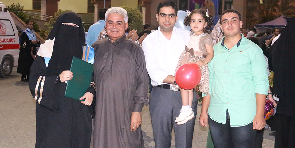 السيد فؤاد(والد الخريج محمد) وعديله السيد سامي(والد الخريجة سمر)، ليلى(شقيقة الخريج محمد فؤاد) ، الخريجة سمر ةزوجها أ. عماد، رمضان منير الاغا، صبحي سامي الأغا
